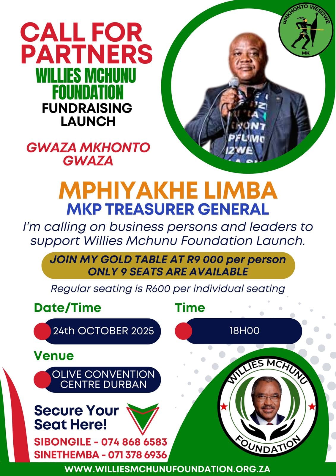 Willies Mchunu Foundation it is the legacy community development foundation named after the unionist, political activists, former KZN legislature speaker-MEC for Transport Community Safety & Liaison and MEC Corporate Governance & Traditional Affairs, father, grandfather, husband, 7th KZN Premier and the peacemaker Mr Willies Mchunu.